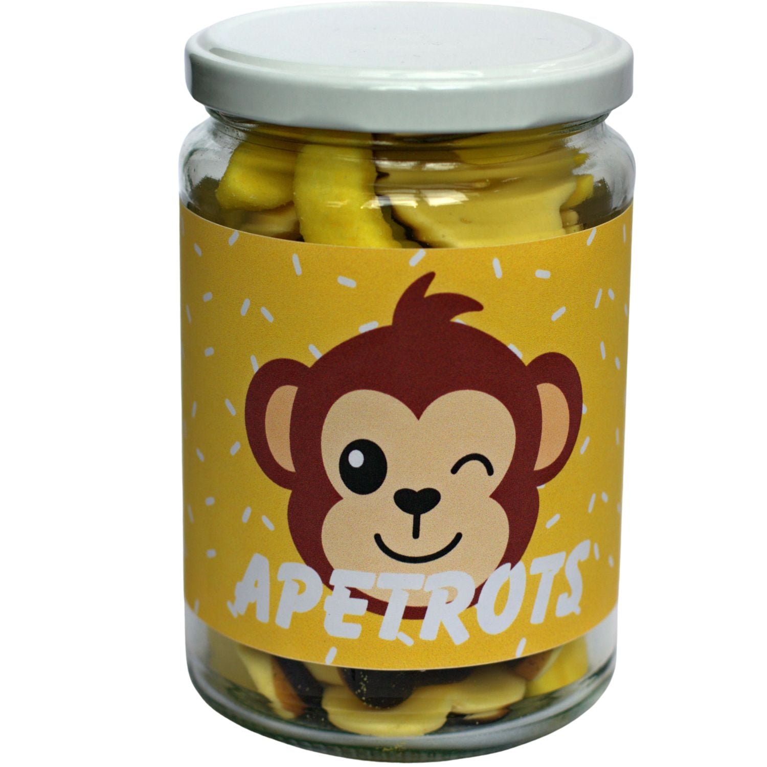 Ben je apetrots op iemand? Laat het zien met deze vrolijke glazen snoeppot, gevuld met 300 gram Gemengd snoep. Het gele label met een guitig aapje en de tekst “Apetrots” maakt dit cadeautje ideaal om iemand te feliciteren met een prestatie of gewoon om te zeggen hoe trots je bent.
