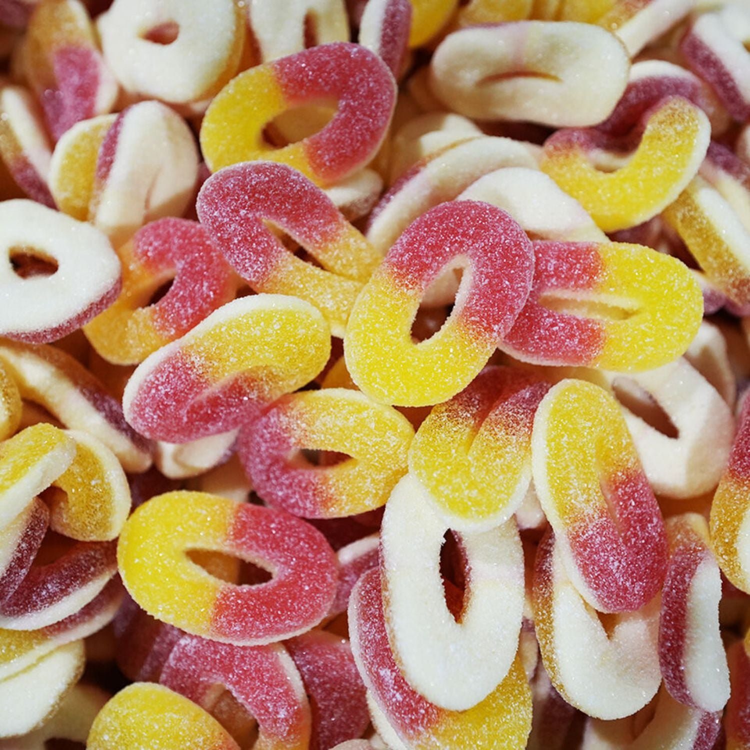 Perzikringen snoep is een onweerstaanbare klassieker binnen het schepsnoep en Pick & Mix snoep assortiment! Deze zachte, gesuikerde snoepringen hebben een heerlijke perziksmaak met een perfecte balans tussen zoet en fris. Dankzij hun chewy structuur en vrolijke oranje-gele kleur zijn ze een echte blikvanger in elke snoepmix.